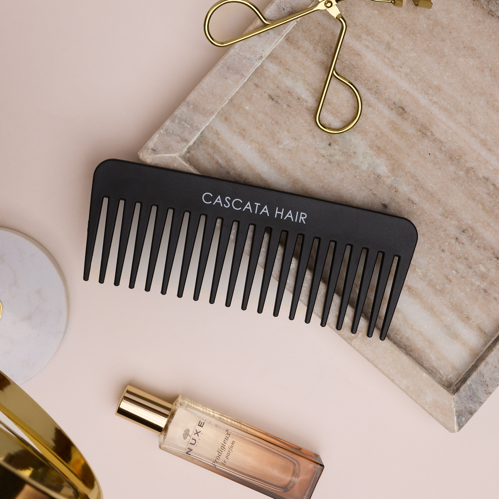 The Cascata Hair Luxury Comb is your anti-static solution for tangle-free styling. This comb is meticulously crafted to gently detangle knots and snarls. With its sleek, wide-tooth design, it effortlessly glides through your hair, reducing tugging and breakage. This chic tool is perfect for styling curls, waves, and adding extra volume with ease.